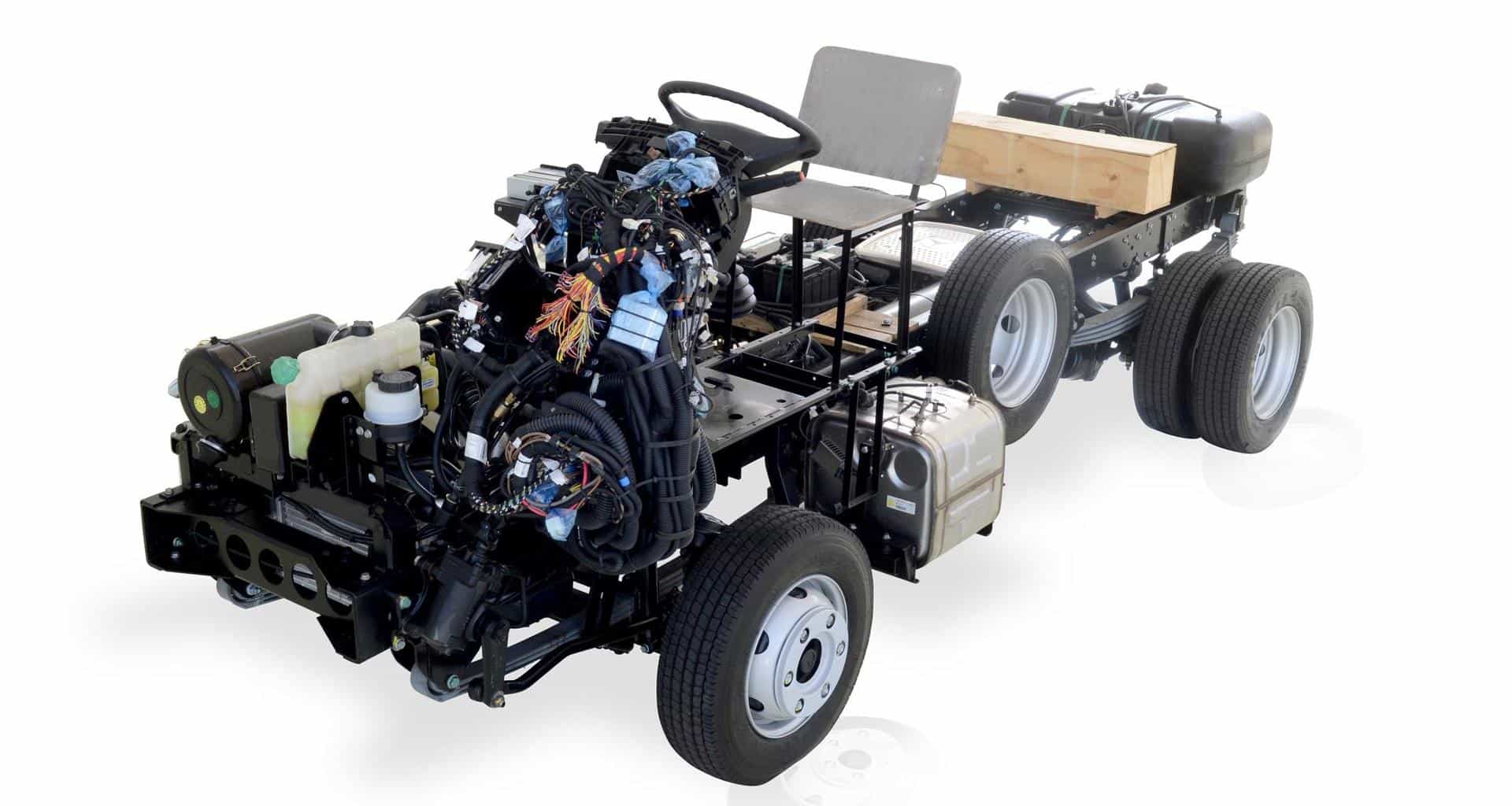 Depois, a fabricante teve de considerar a rapidez e o mínimo de intervenção por parte da empresa implementadora no chassi. Ao Andrade conta que ao todo, o chassi 915 E recebeu 11 adequações para que o implementador toque o mínimo possível no equipamento.