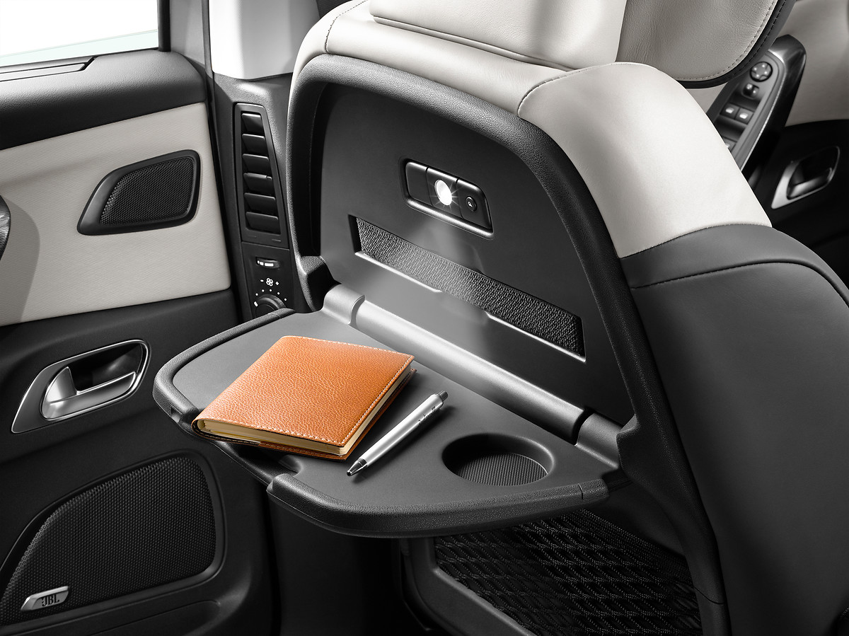 Os requintes seguem na parte traseira, que acomoda três bancos individuais com regulagem longitudinal e encostos reclináveis, duas mesinhas com luzes de leitura individuais — na configuração de sete lugares há ainda duas telas em LCD no encosto de cabeça dos bancos dianteiros—, cortinas retráteis nos vidros laterais, dois enormes porta-trecos sob o assoalho, comandos do fluxo do ar condicionado e espaço de sobra mesmo para pessoas de maior estatura, que podem viajar com as pernas cruzadas sem qualquer incômodo.