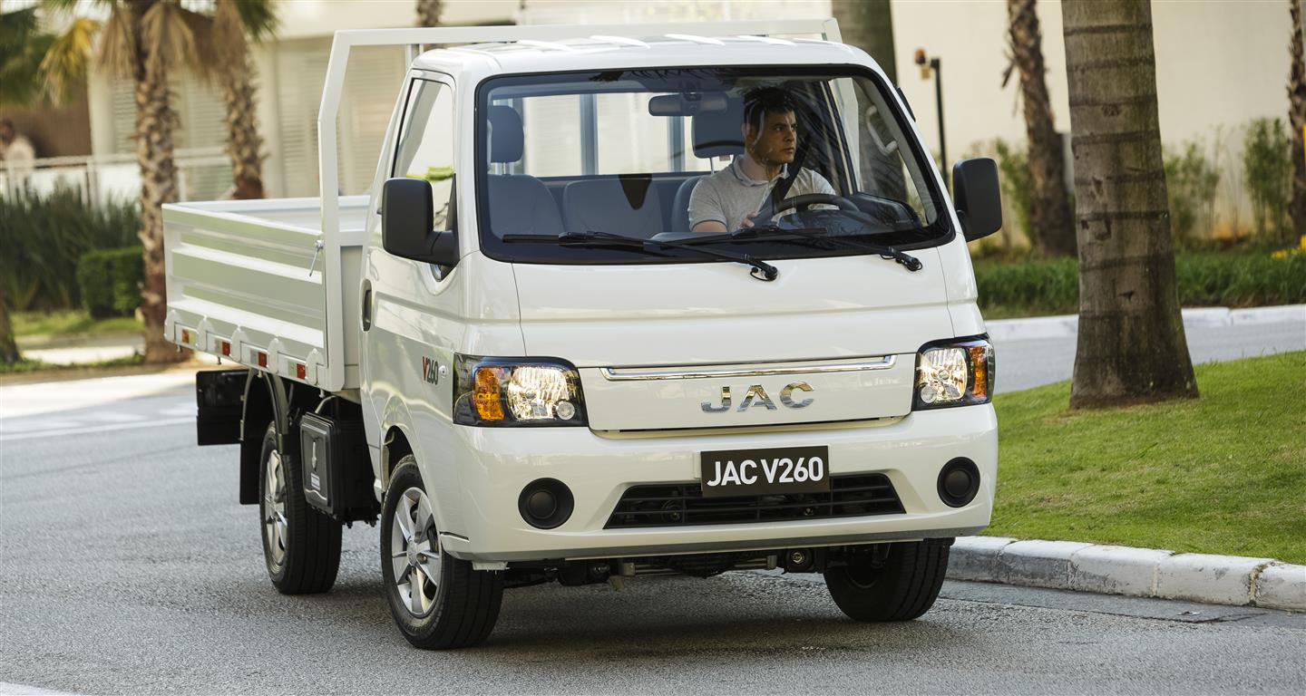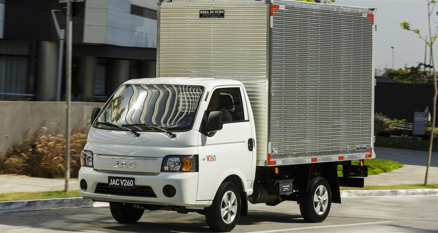 Após a tentativa com o T140 em 2012, frustrada pela sobretaxa do Inovar-Auto, que inviabilizou as vendas além das 500 unidades previamente encomendadas à China, a JAC Motors inicia nesta quarta-feira, 11, sua segunda investida no segmento de caminhões leves. Desta vez com o V260, modelo com 3,2 mil kq de PBT — 1,5 mil de carga útil —, que se enquadra na categoria dos Veículos Urbanos de Carga, os conhecidos VUCs.