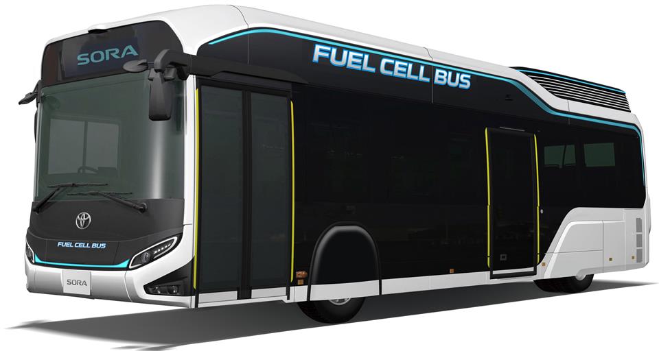 A Toyota também inova com o Sora, um ônibus que reúne a tecnologia de célula de combustível à de motores elétricos. A fabricante avisa que o modelo será produzido em massa, como parte as metas estabelecidas pela empresa na redução de 90% das emissões de CO2 originadas de seus veículos novos até 2050.