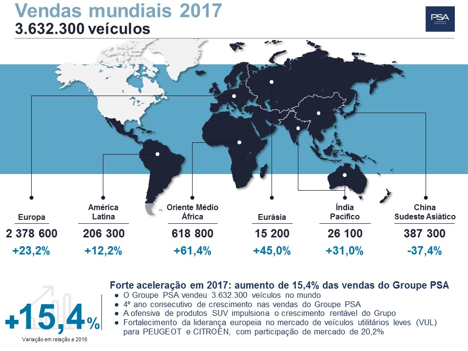 No ano passado, o Grupo PSA vendeu 3,6 milhões de veículos em todo o mundo, volume que representou expansão de 15,4% sobre o resultado obtido no ano anterior.