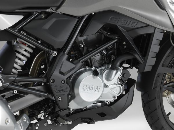A GS tem motor monocilíndrico de 313 cc, quatro válvulas e dois eixos de comando, que desenvolve 34 cv.