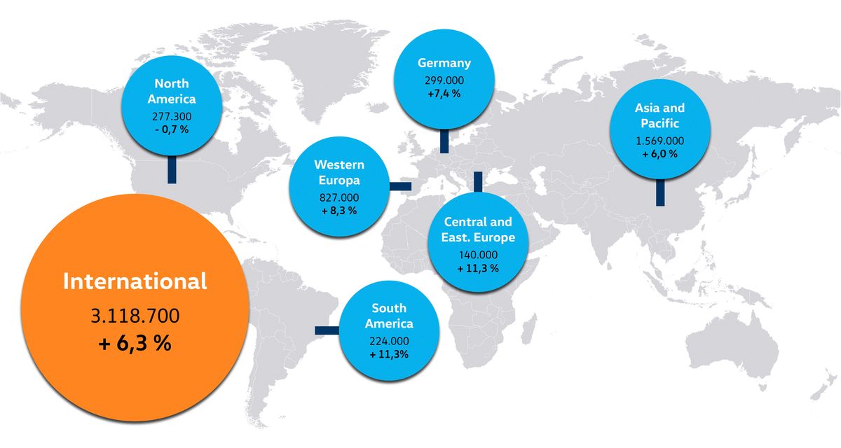 Na Europa, um dos seus principais mercados, as entregas no primeiro semestre chegaram a 967.000 veículos, volume 8,7% superior ao apurado um antes, de 889.600 unidades. Em seu país nativo, a Alemanha, as vendas da empresa cresceram 7,4% no período, para 299.000 carros contra 278.500 vendidos nos seis primeiros meses do ano passado.