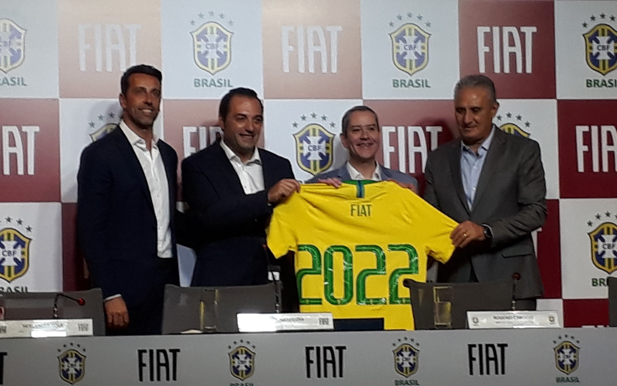 “Como a mais brasileira de todas as fabricantes de automóveis, é com muito orgulho que a Fiat se torna patrocinadora oficial das seleções brasileiras, unindo duas grandes paixões do nosso país: futebol e carros”, comentou o italiano Filosa, que falou do pentacampeonato brasileiro, sem esquecer que por duas vez o Brasil foi campeão vencendo a Itália.
