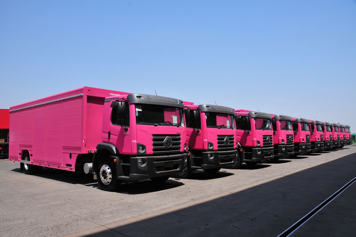Dez Constellation 17.190 V-Tronic encarroçados pela Facchini para atuar no transporte de bebidas pintados de rosa serão entregues para a Postobón, uma das maiores fabricantes de bebidas da América do Sul. A cor inusitada faz referência a um refrigerante de maça muito consumido no país. Com novo lote, a empresa somará 49 caminhões Volkswagen, todos rosa, cor desenvolvida especialmente para atender a Postobón.
