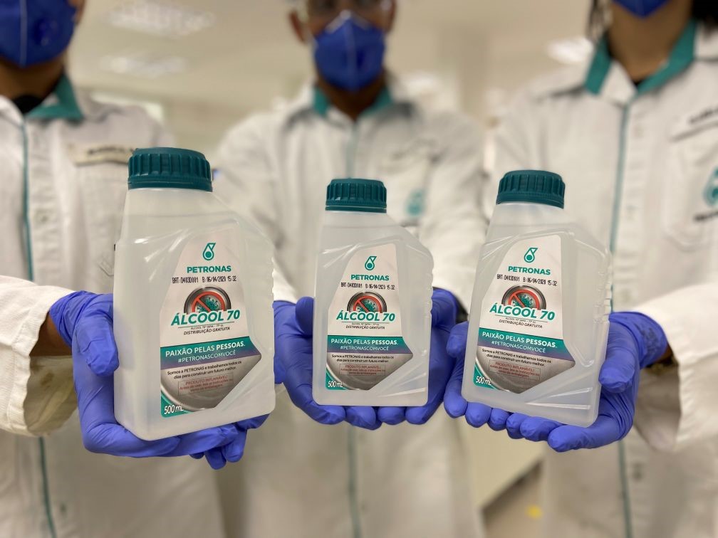 A Petronas fabricará 8 toneladas de álcool 70° INPM – 77° GL líquido para limpeza e desinfeccção de ambientes. A empresa doará a produção a instituições de assistência social e saúde, funcionários, terceiros e outras empresas. O álcool já está sendo produzido em Contagem (MG).