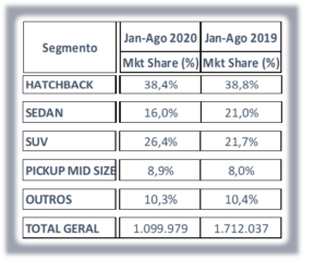 Apesar de ainda existirem percalços a enfrentar na cadeia de fornecimento, no câmbio e na conjuntura econômica que podem levar à indisponibilidade de produtos, o efeito observado a partir de junho leva a crer que a segmentação de vendas irá sim ser alterada, mas na direção já prevista antes da crise e considerada no planejamento de produtos das montadoras, com participação maior dos SUV e redução do volume dos hatchback e sedans.
