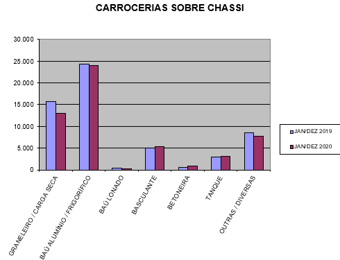O segmento de reboques e semirreboques respondeu por pouco mais da metade das vendas, com 67 mil unidades, 6% a mais do que o volume apurado em 2019. Já as carrocerias sobre chassis, mais ligadas às atividades de distribuição, ainda se mantiveram em curva descendente e recuaram 5%, somando 54,5 mil unidades negociadas.