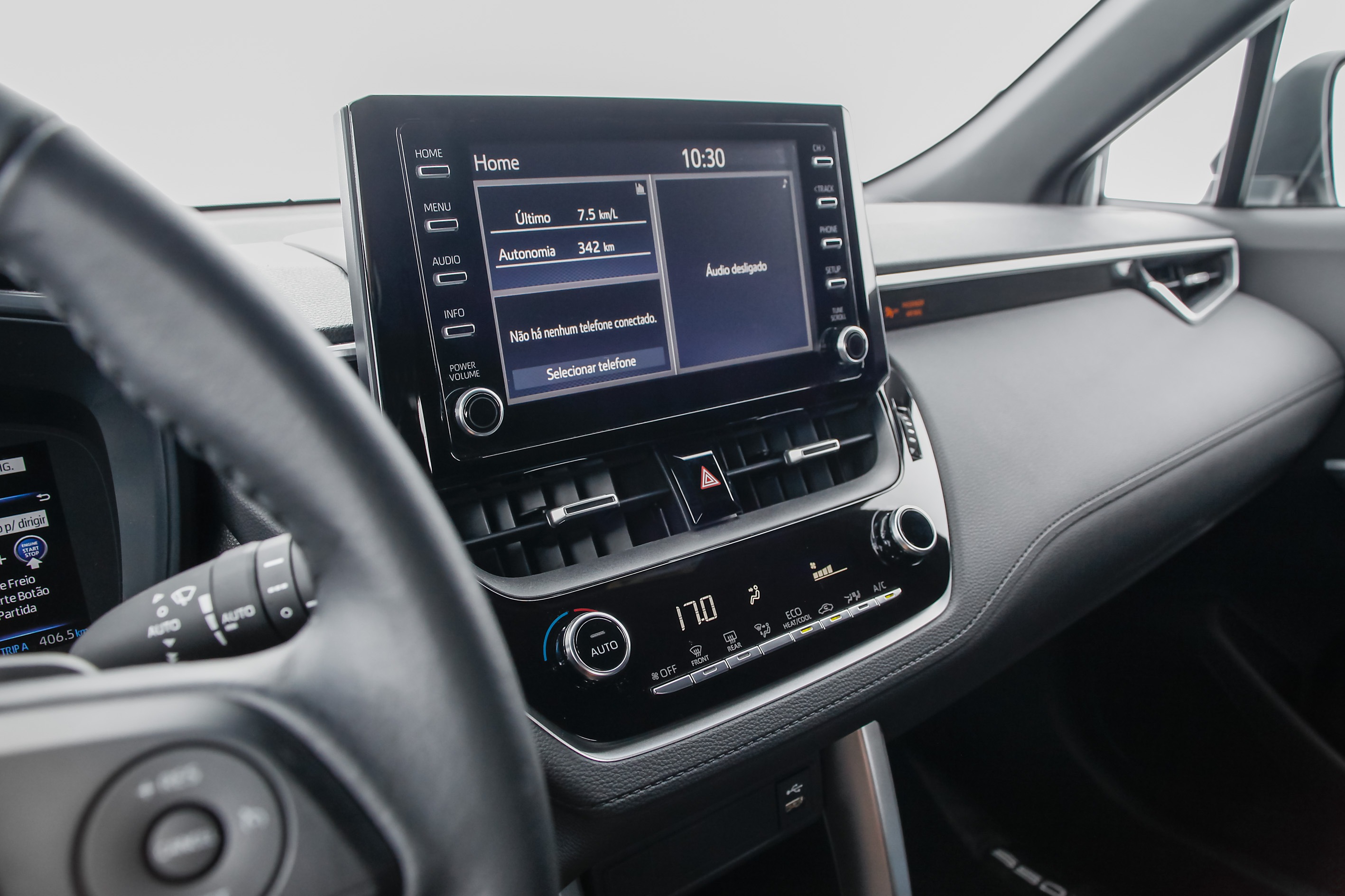 O acabamento e componentes internos do Cross são condizentes com a média do que é oferecido nos muitos modelos do segmento e segue o padrão do Corolla sedã e da própria marca, que sempre se caracterizaram pela discrição e qualidade mais do que por formas e materiais arrojados e de impacto visual.