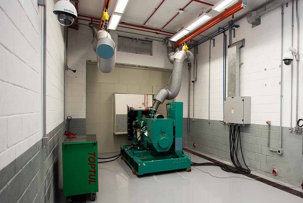 A nova sala de teste permite ensaios de ensaios de grupos geradores de até 1.000 kW em temperatura ambiente controlada que pode chegar até 50ºC. O sistema de insuflamento é responsável por fazer o controle da temperatura e da contra pressão, de até 2 polegadas de água, para verificação do fluxo e vazão de gases.