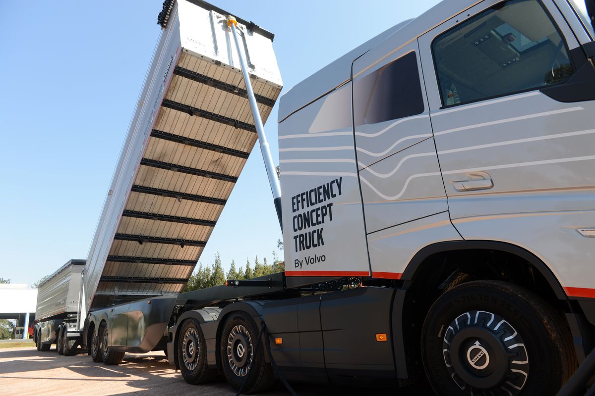 A partir de um FH 6×4 e parcerias com a Randon, Hyva e Continental nasceu o Efficiency Concept Truck, graneleiro rodotrem que pretende ser fonte de informações para futuros desenvolvimentos.