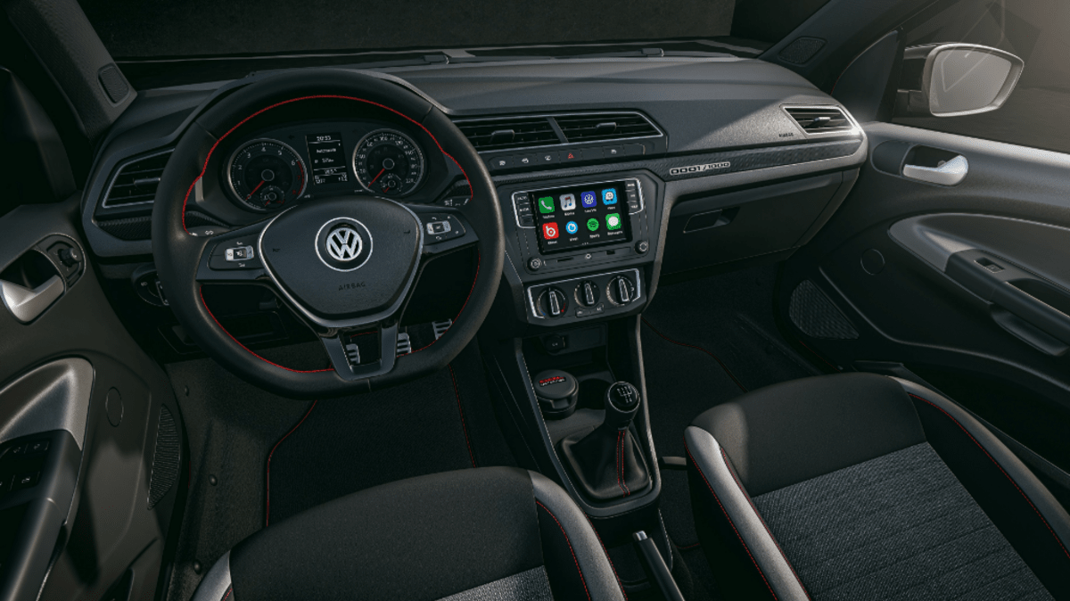 Todo o acabamento foi elaborado com elementos que de alguma maneira esteve presente ao longo das cinco gerações do modelo. Caso dos bancos que lembram os Recaro do esportivo GTi, de 1988, com costuras vermelhas.