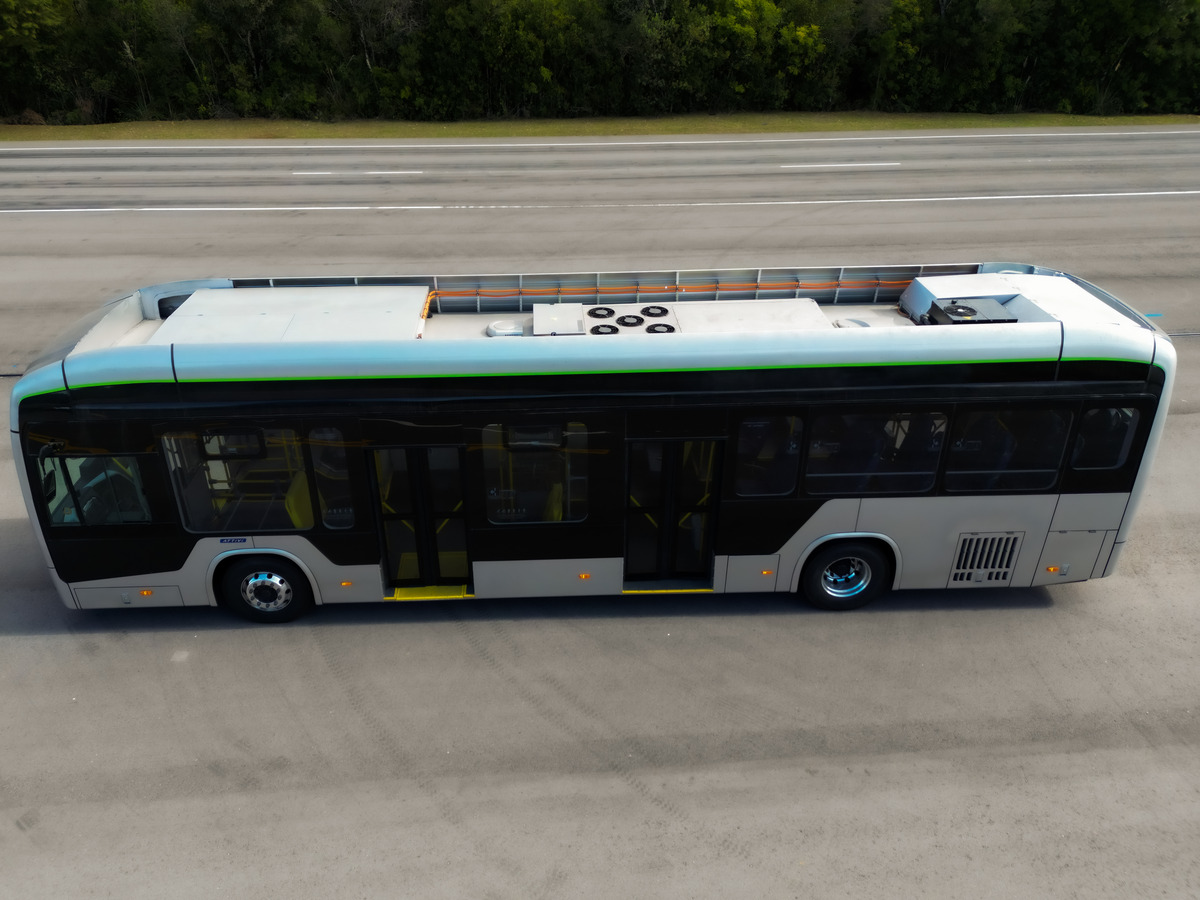O Attivi tem uma concepção diferente da habitual encontrada em ônibus elétrico. O modelo traz o motor central no meio das longarinas em vez de instalado no eixo. “É uma solução pensada para garantir mais durabilidade, especialmente em mercados como o do Brasil, nos quais dominam vias precárias e sujeitas a alagamentos”, lembra Gazzi.