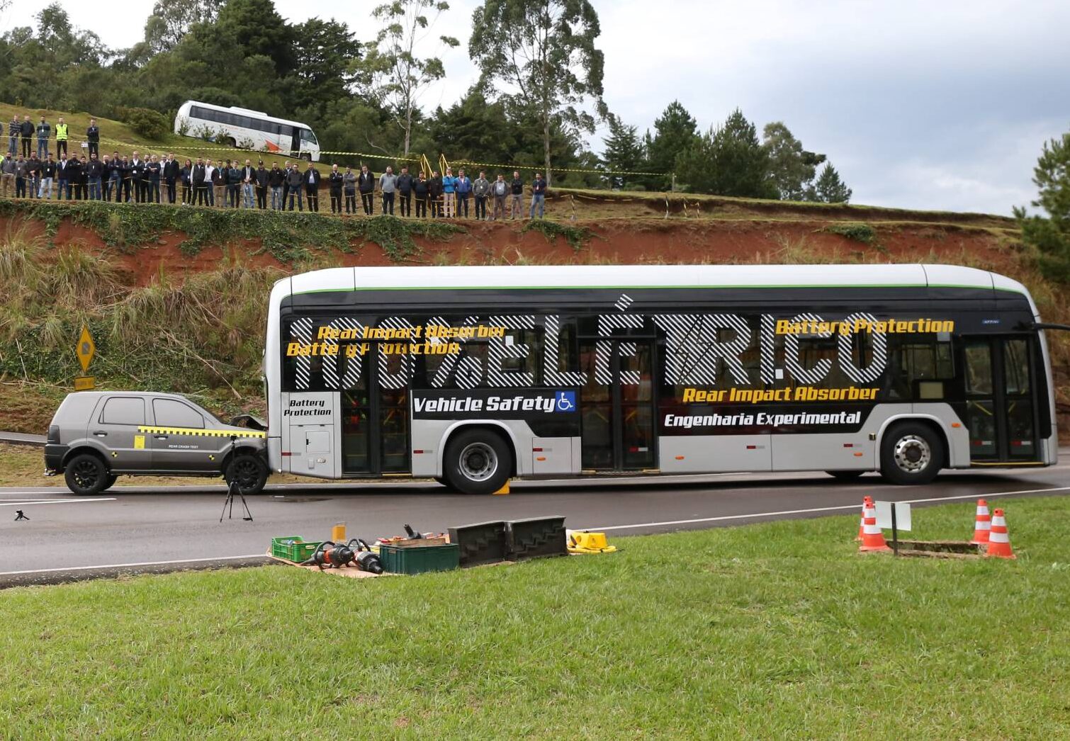 AMarcopolo realizou um crash test traseiro com seu ônibus elétrico Attivi Integral. É a primeira vez que uma avaliação do gênero é realizada no Brasil. Segundo a fabricante, o teste confirmou que “a estrutura do modelo oferece resistência a impactos acima do exigido pelas normas existentes, sem quaisquer danos às baterias e sem risco algum para os ocupantes do veículo”.