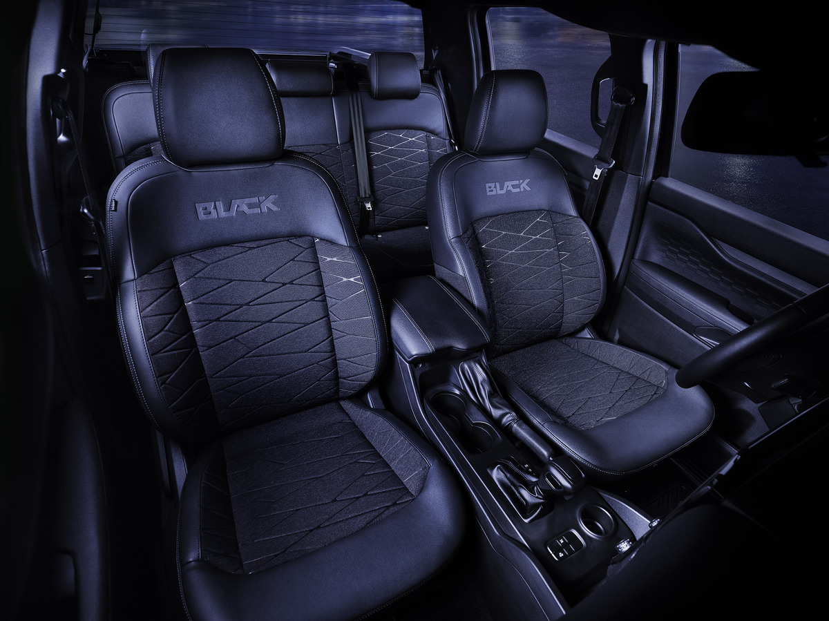 Por dentro, o sobrenome Black fica evidente pela predominância do preto. Os bancos são parcialmente de couro e identificam a versão com inscrição em alto relevo.