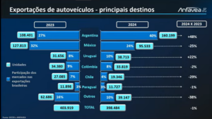 A queda de 1,3% em 2024 poderia ser ainda maior não fosse a recuperação das vendas na Argentina, principal destino dos veículos brasileiros, no segundo semestre.