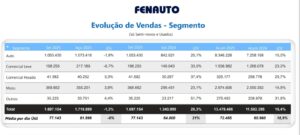 O mercado de usados como um todo somou 13.478.486 negócios de janeiro a setembro, expansão de 16,4% sobre as 11.582.395 unidades do mesmo período de 2024. Desse total, 73% são automóveis e comerciais leves, 2,4% são veículos pesados e os demais são motocicletas e outros.