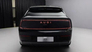 Quem vê a dianteira do novo modelo pode estranhar a ausência das tradicionais quatro argolas da marca. Mas a linha elétrica exclusiva para o mercado chinês adotou o nome Audi como logotipo desde 2024, quando apresentou seu primeiro produto, a station wagon E5 Sportback .