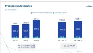Ao divulgar os números, Igor Calvet, presidente da Anfavea, fez questão de destacar o resultado surpreendente de março, que teve o melhor mercado interno desde 2013. “Foram quase 270 mil emplacamentos, expressiva alta de 45% sobre fevereiro e de 37,5% com relação ao mesmo mês de 2025”, destacou o executivo.