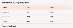 - Em três meses, Kait rouba do Kicks a liderança de vendas na Nissan - 9 de abril de 2026